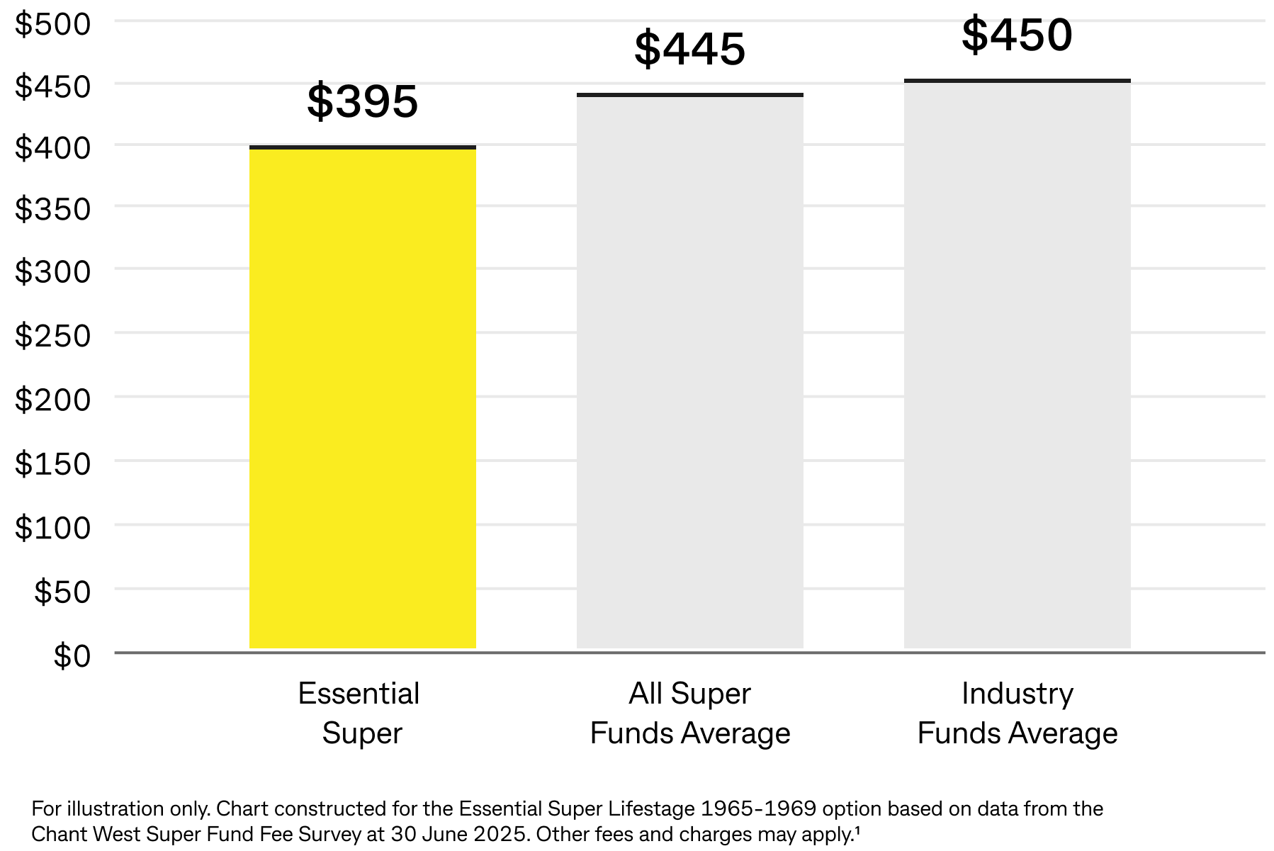 See how Essential Super compares with average funds based on a $50,000 super balance.¹