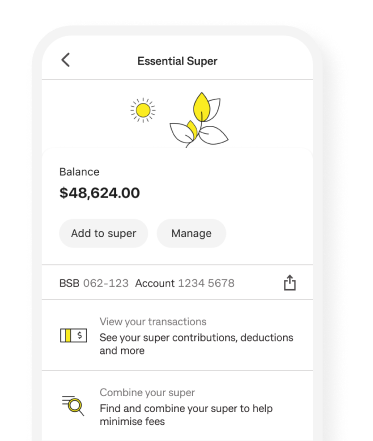 You can view your super balance, make contributions and directly click through to Colonial First State (CFS) to manage your super account, all via your CommBank app.